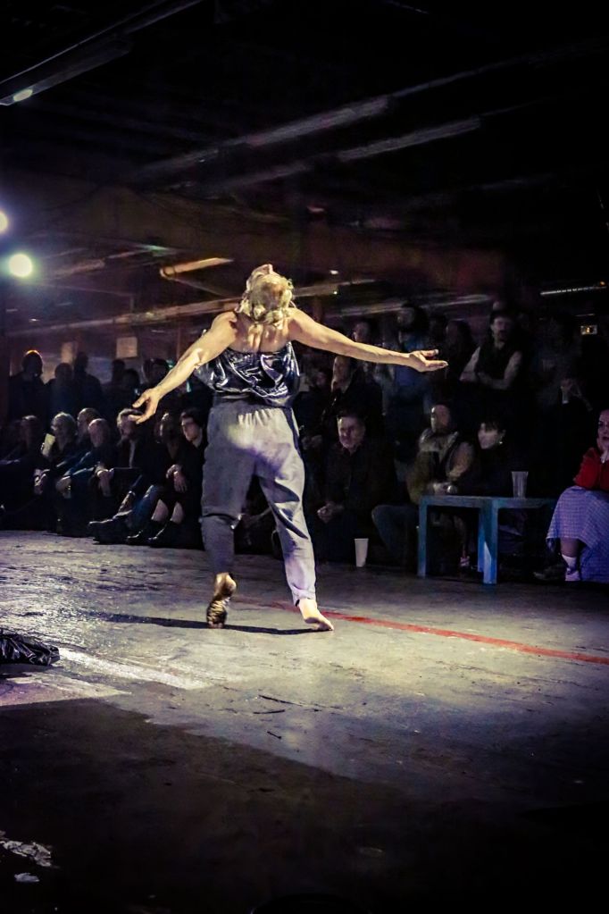 Ghost in the Machine was another immersive and collaborative piece running each day throughout the festival, on the Factory Floor. This combined elements of visual art and physical theatre, with dance, costumes and drumming to create a site specific exhibit created by Jill Martin Boualaxai. The vision was to create a piece of art ‘exploring memory, transformation, and industrial folklore through movement, drawing, and sculptural installation’. The Sativa Drummers who we had taken in the day before in their own performance, were also part of this performance. It was an interesting piece to watch, and really brought a new appreciation for me, for this type of modern art.