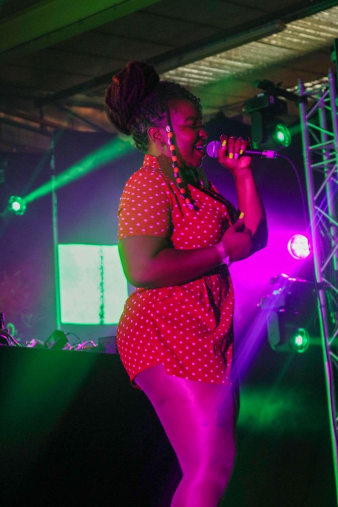 Keeping in a similar genre were ,Y, a London based band who also blur the lines seamlessly between old timey jazz and more modern electronica, punk and hip hop. I particularly loved the off beat and sometimes deliberately off key vocals from Sophie Coppin and soulful Saxophone skills from Harry McHale. Later in the day we took in MC Yallah & Debmaster who brought fierce East African hip-hop energy, getting the vibes amped up for the evening. Bee Asha also offered a deeply personal and emotionally charged set that resonated with the crowd.