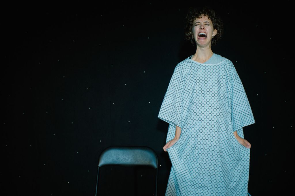 Davison is a great performer and actor whose writing is witty and somewhat waller-bridge-esque – everything opens on the phrase – “Fuck me I need a coffee” before diving into an abrupt – and insensitive – tirade of pregnancy with whaling metaphors – a recurring motif through the show.