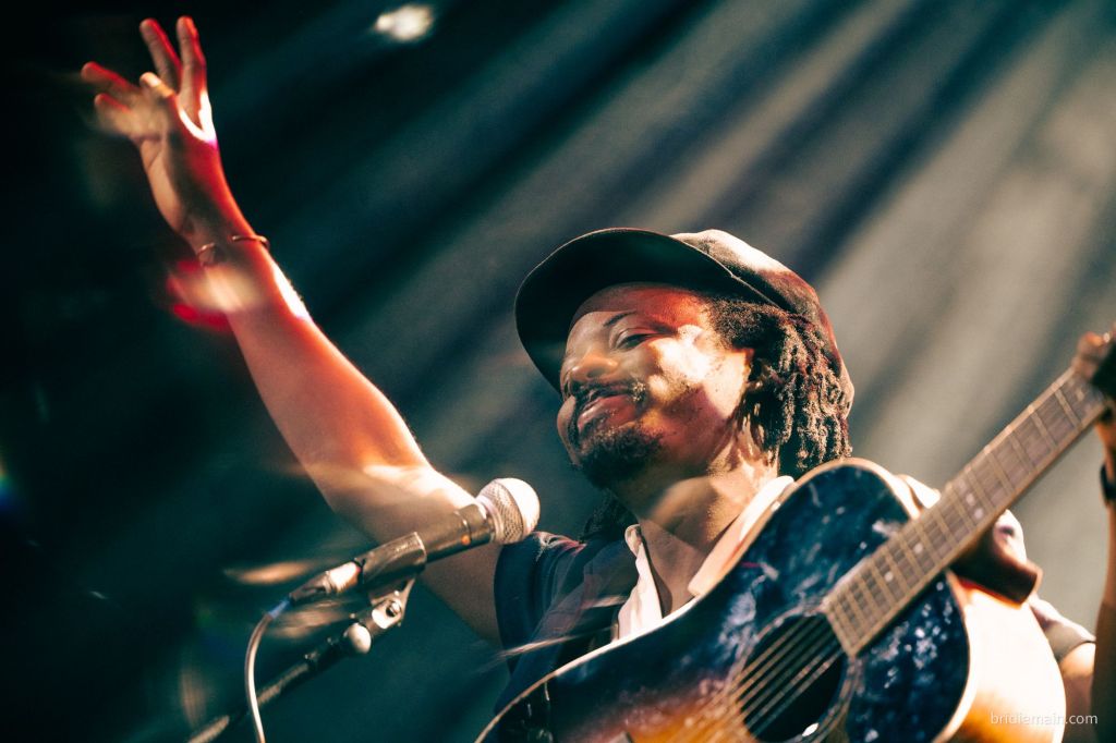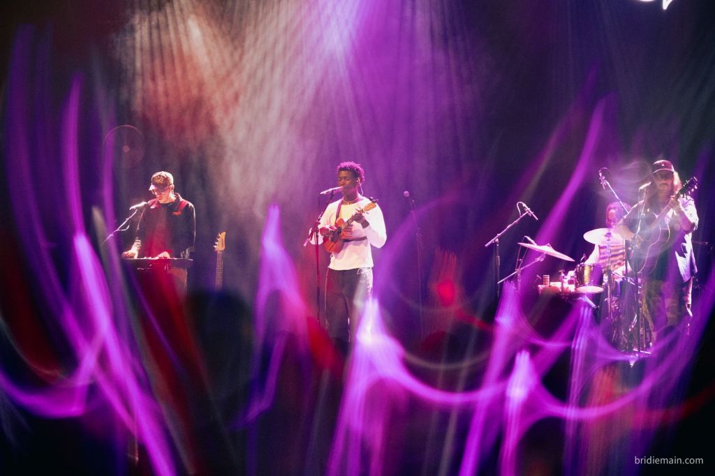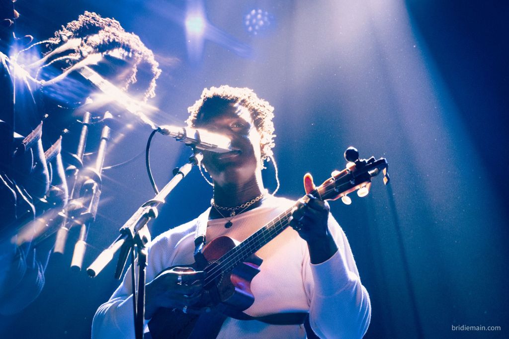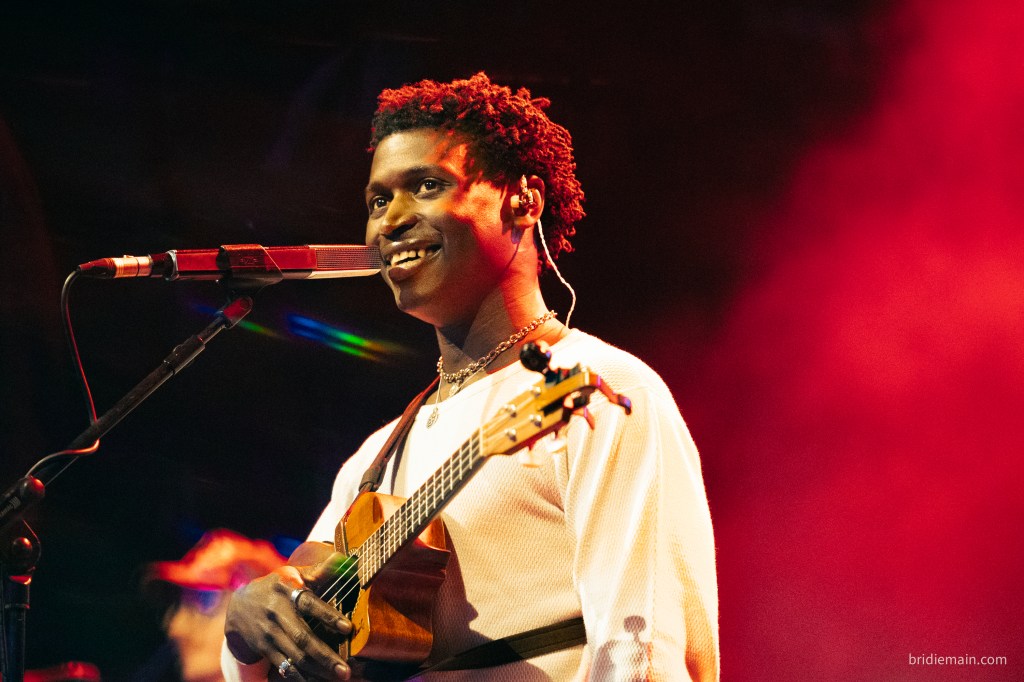 Next up, was musician ‘Tommy WÁ’, who immediately received a hollered “we love you” as he came on stage, which he hollered back in kind. I quietened the voices of cynicism as Tomma introduced himself. Born in Nigeria but having lived in Ghana most of his life, in his own words he is a “proper West African boy” and describes his music as “African Folk”. Tommy WÁ had a bright, friendly charisma that was very engaging. Both opening artists gave a small introduction between each song which added to the storytelling nature of the songs themselves. This isn’t unheard of in other genres, but it interested me because of the more stripped back nature of the music which perhaps relies more on the connection to the audience and the weaving of the stories between the songs. Either way, I was by now enjoying it very much and feeling as if I was understanding pop-folk a little more. Tomma Wa’s stories were of his home, his family and particularly God, with a definite gospel influence in his sound.