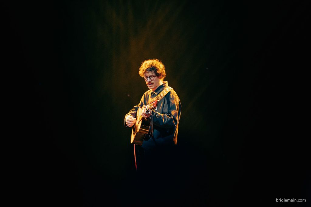 I was uncertain of what to expect. Pop-folk is not my usual genre. Part of me had terrible visions of self-important wailing or, worse, something just dreadfully boring. At 7:30 the tone was set with the opener ‘The Man The Myth The Meatslab’, arriving alone on stage. The British artist has an overwhelming sense of humility and friendliness, which radiated throughout the audience.