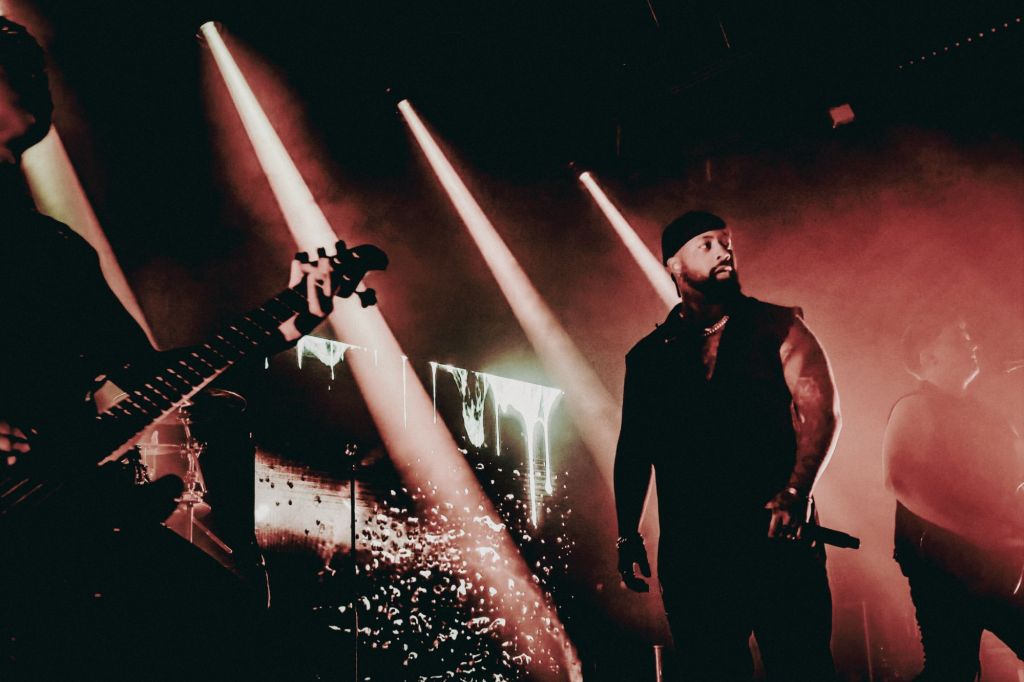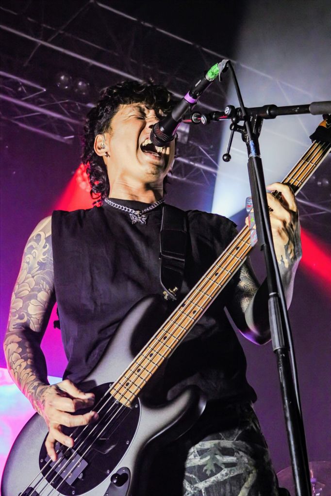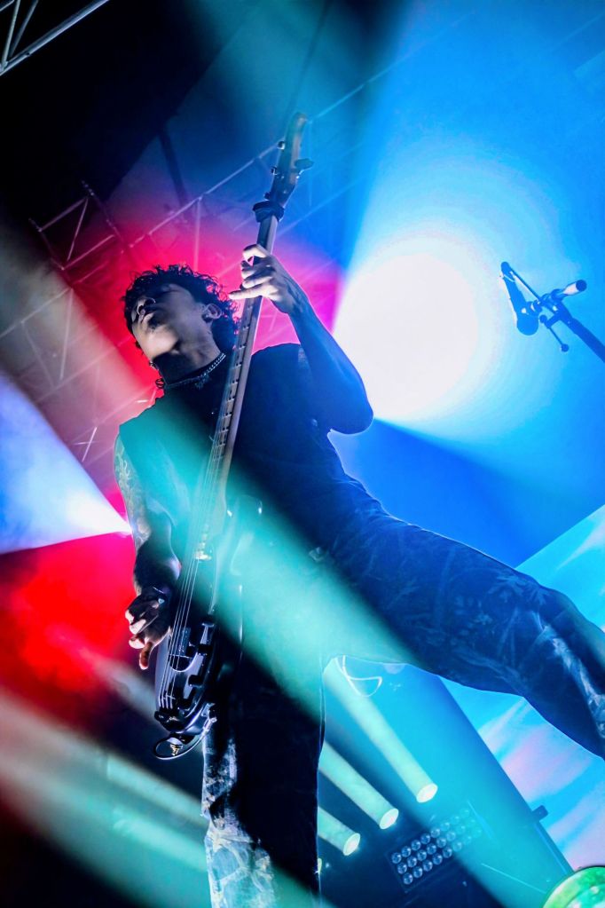 After grabbing a beer, I got back in the room for Sleep Theory taking to the stage, strutting out like a band who’ve realised their career is levelling up faster than a Weegie on Buckfast. And in fairness — every UK date got upgraded because they sold out in minutes (that is indeed a fact), so who can blame them for walking tall? Cullen Moore’s vocals were absolutely surgical: one minute soft and soulful like he was in Boyz2Men, the next minute belting it out, like he was trying to summon the rain outside to f**k off. Their signature blend of hard rock, metalcore bite, and pop hook sweetness filled the Galvanizers like it was built for exactly this kind of beautiful racket. Every chorus soared; every riff punched; every person screamed along, like they’d been rehearsing in the queue.