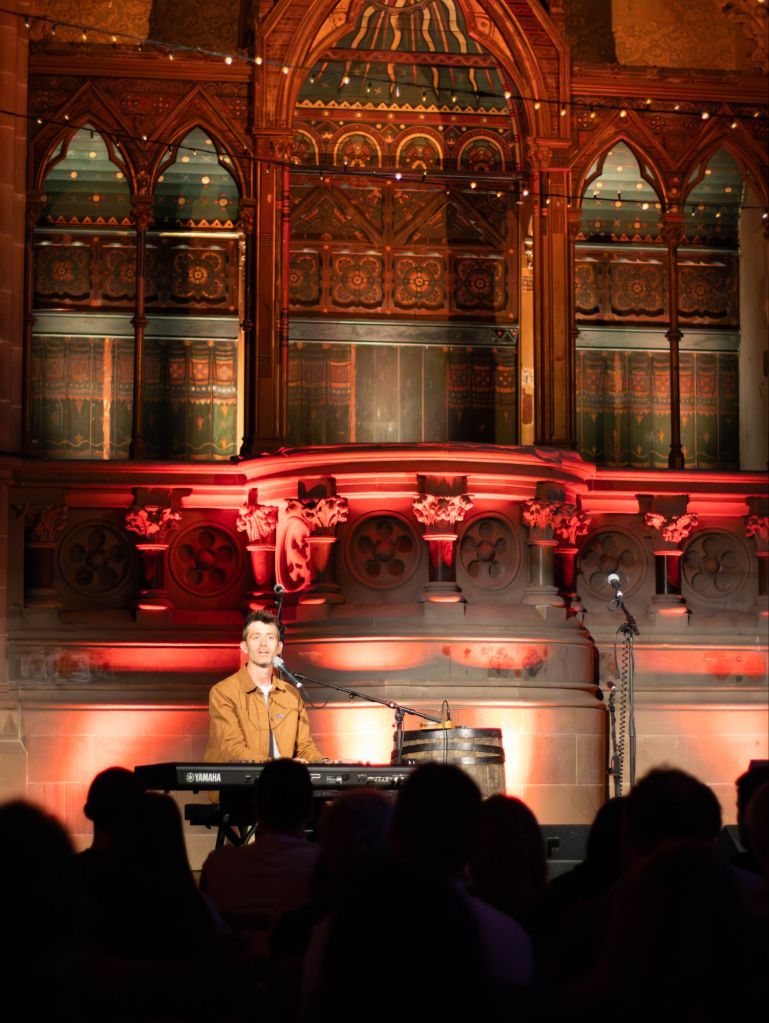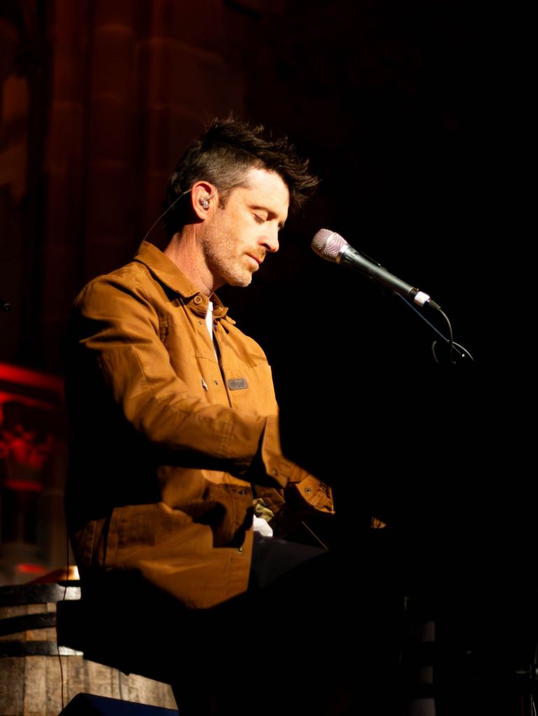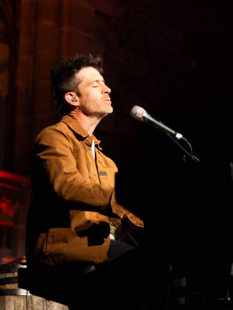 The evening began with support act Brendan James, a piano-based singer-songwriter who set the tone beautifully. With both hands dancing across the keys — swinging between thunderous dynamics and the softest touch — his performance was full of contrast and quiet power. His voice hung in the warm red-lit air of the theatre, and his storytelling carried you from understated verses into emotionally charged choruses with nothing but a keyboard for company. It was simple, sincere, and deeply moving. I very nearly cried.