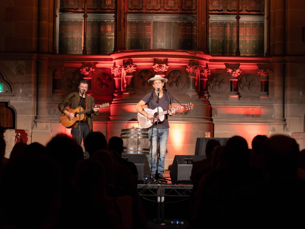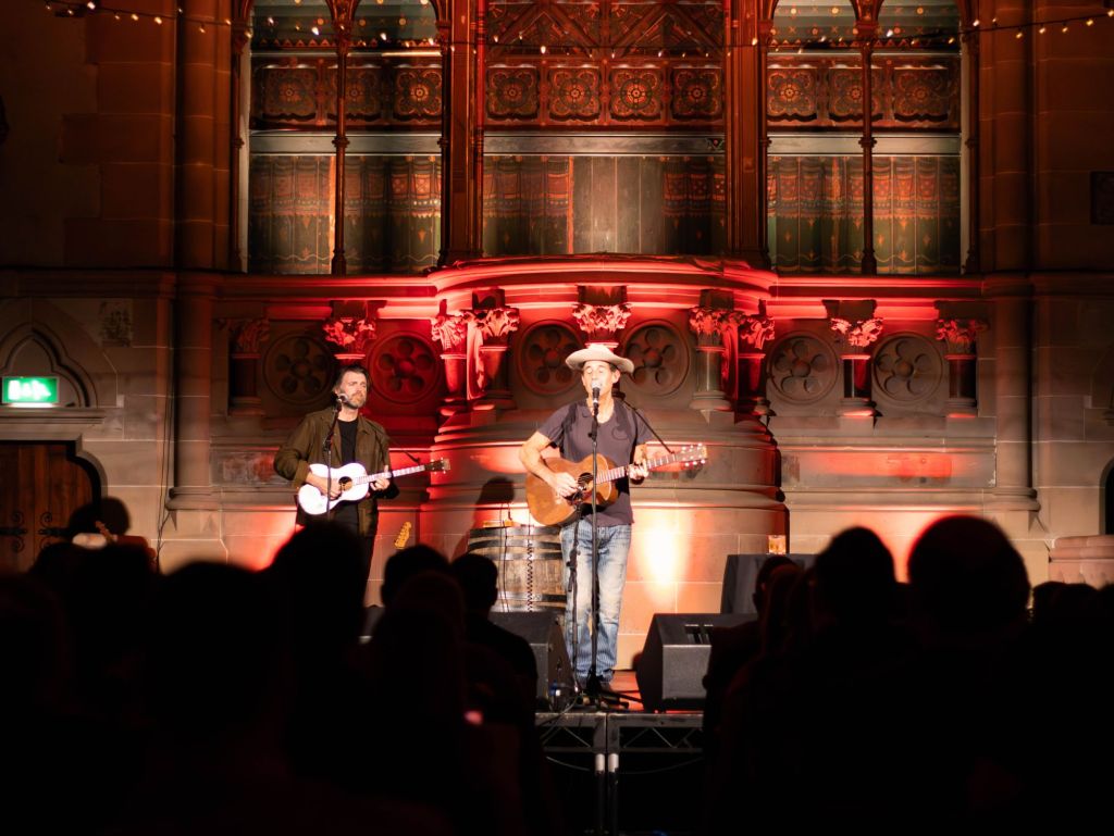 The closing moment of the night was the most memorable of all. Radin covered Bob Dylan’s ‘Don’t Think Twice, It’s All Right’ — entirely unplugged. No microphones. No speakers. Just the musicians on stage facing one another, playing acoustically into the open air of the theatre. It was arresting. The room seemed to hold its breath. It felt less like a concert and more like being invited into someone’s living room — the kind of music you hear at a friend’s house late at night, when everyone has stopped performing and is simply playing.